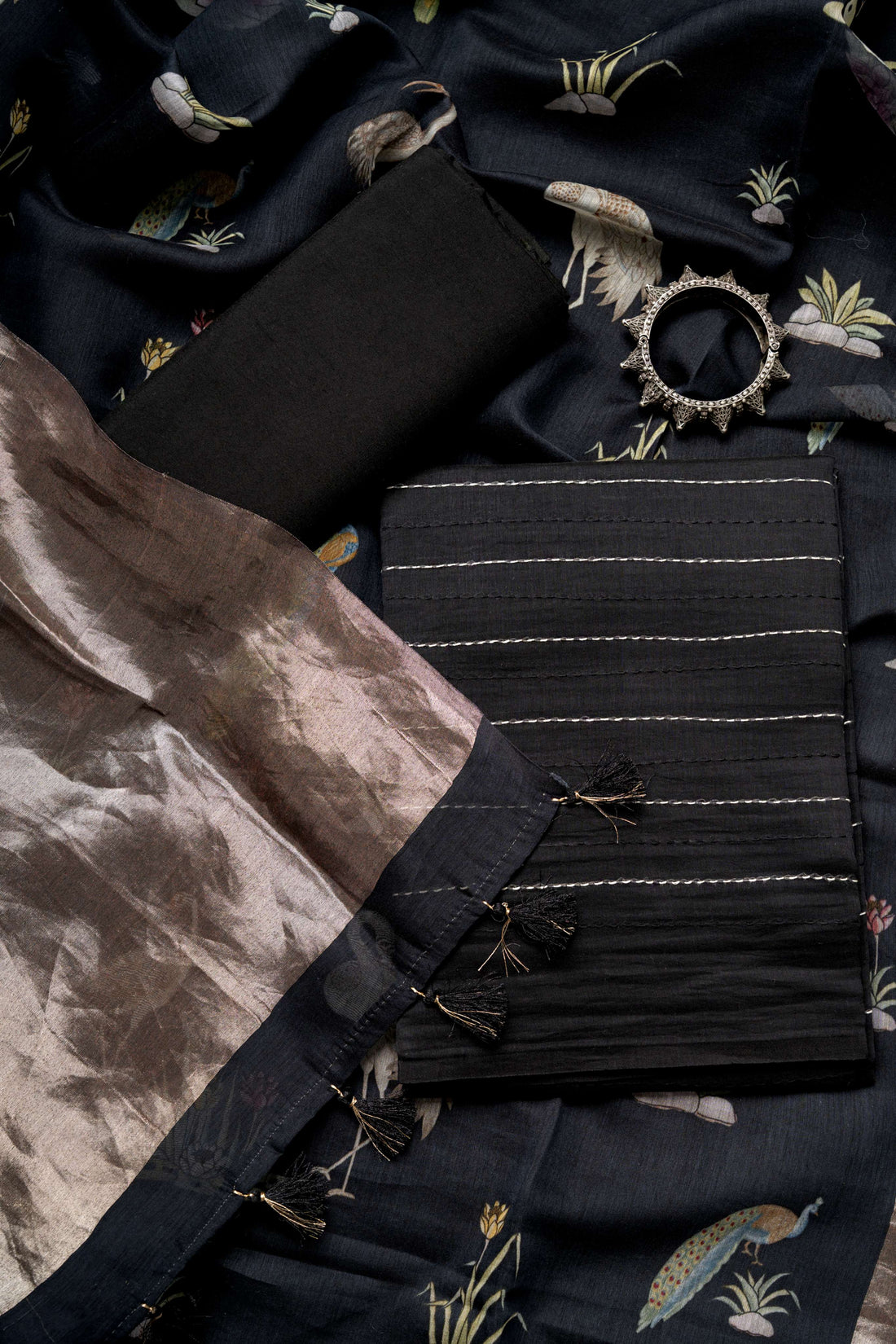 Black Tissue Pallu Chanderi Digital Print Dupatta and Kantha Kurta with bottom