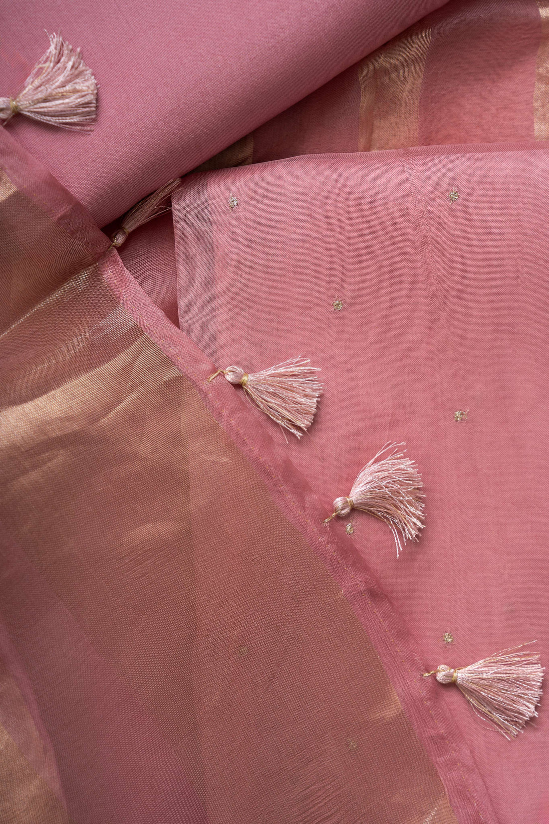Misty Pink organza Kurta with Zari Work and Tissue Stripes Dupatta Suit Material