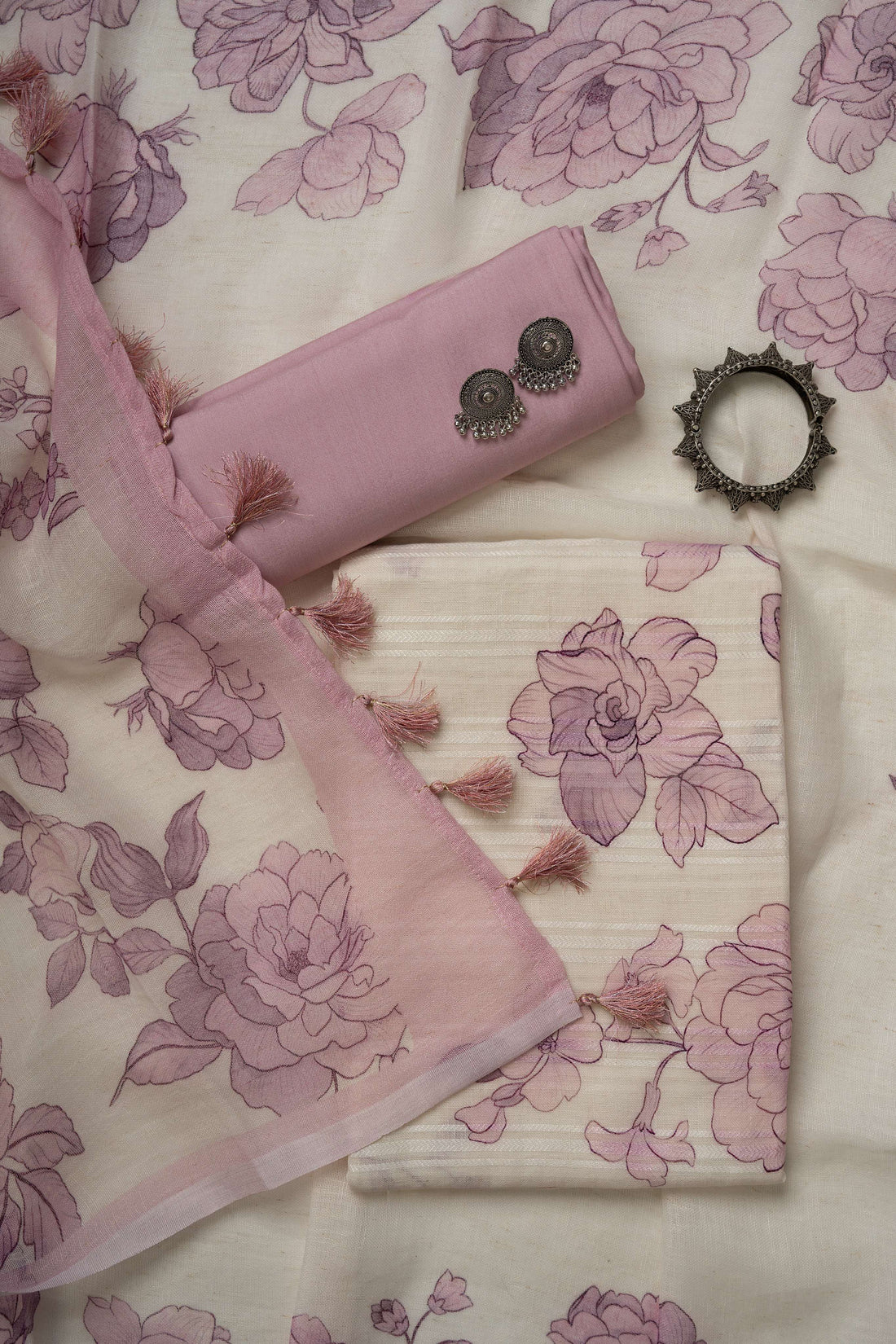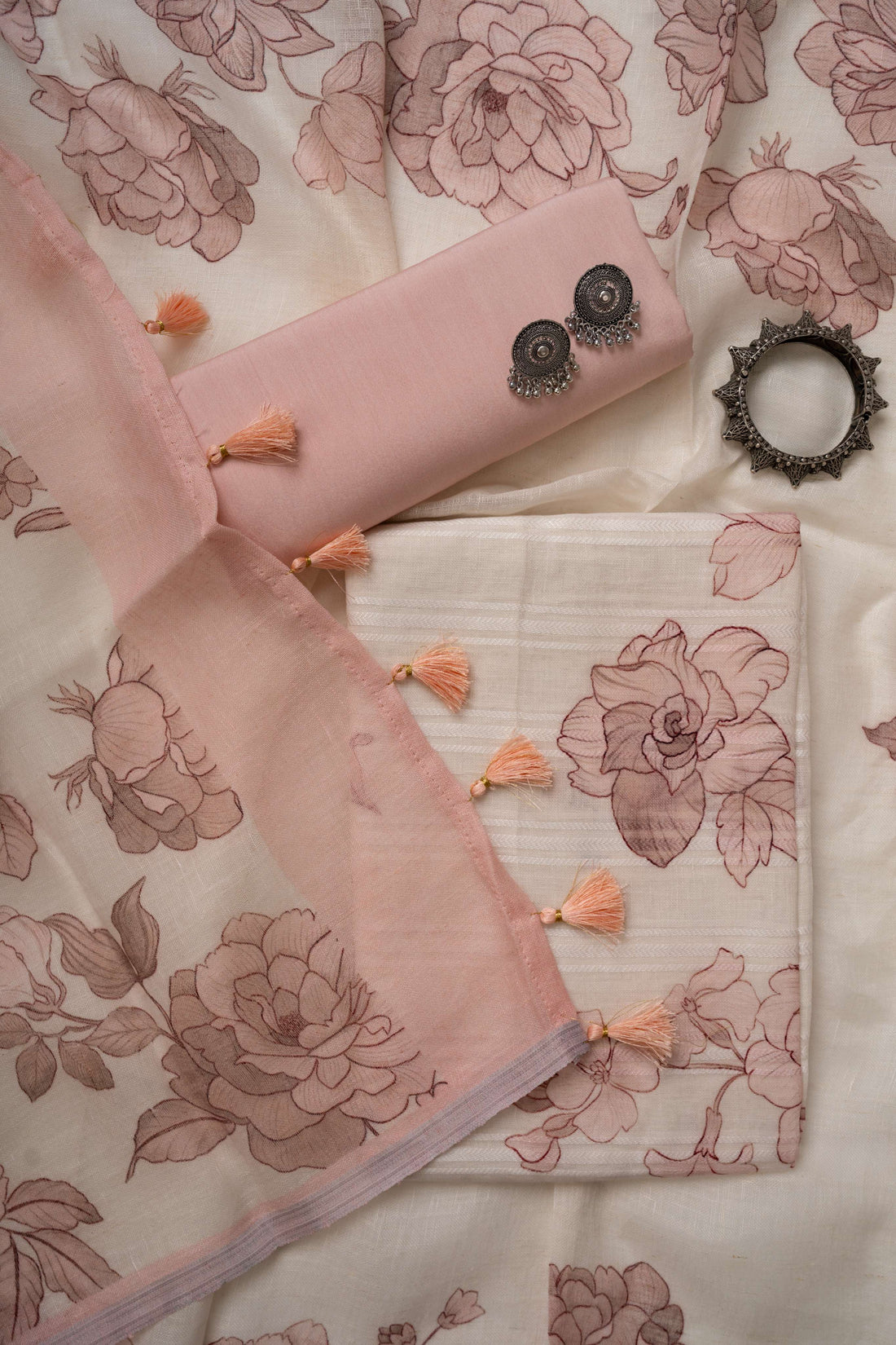 Product Description : White and Pink Self-Weaving Linen Digital Print Floral Suit Material Discover exceptional...