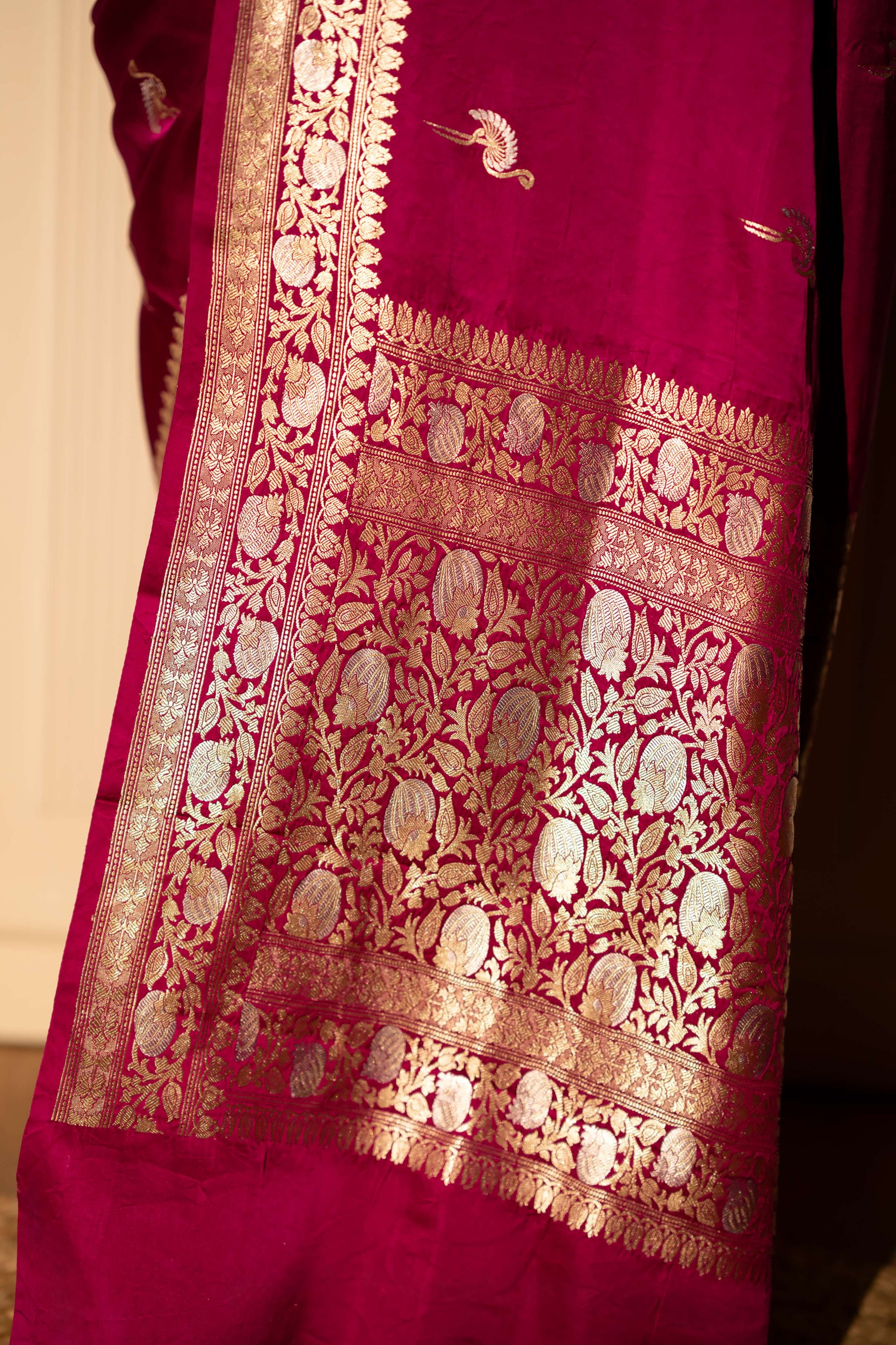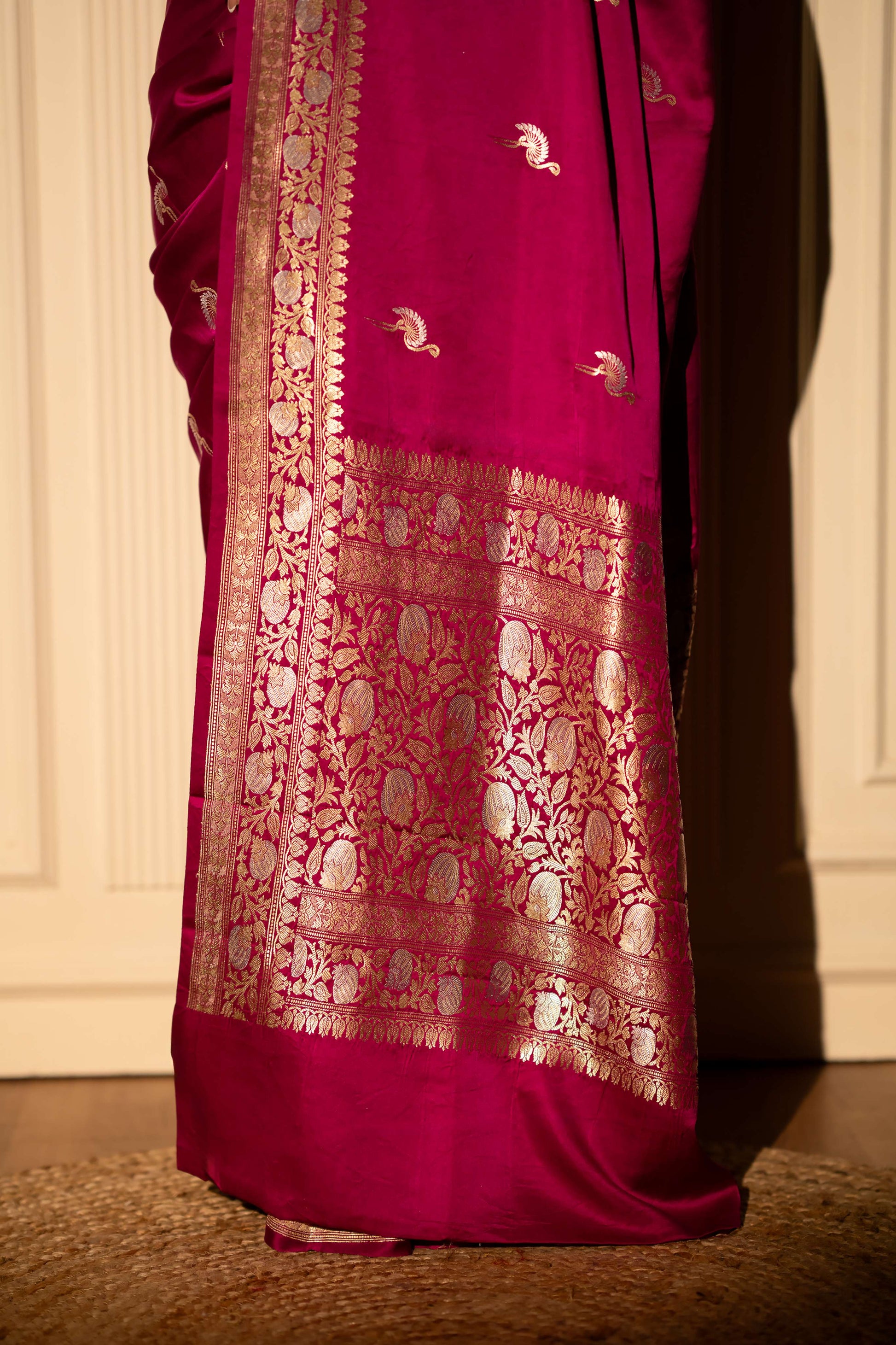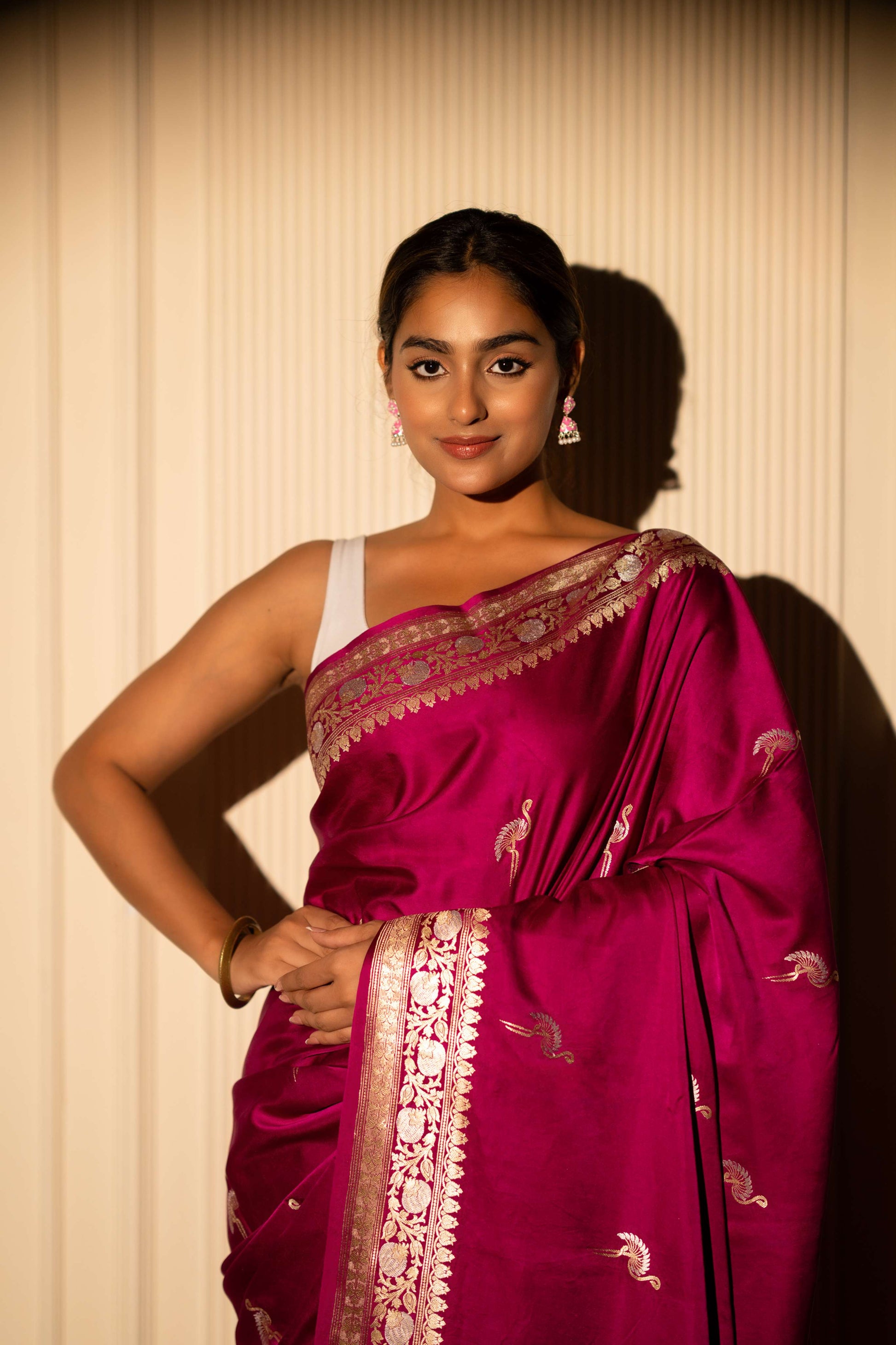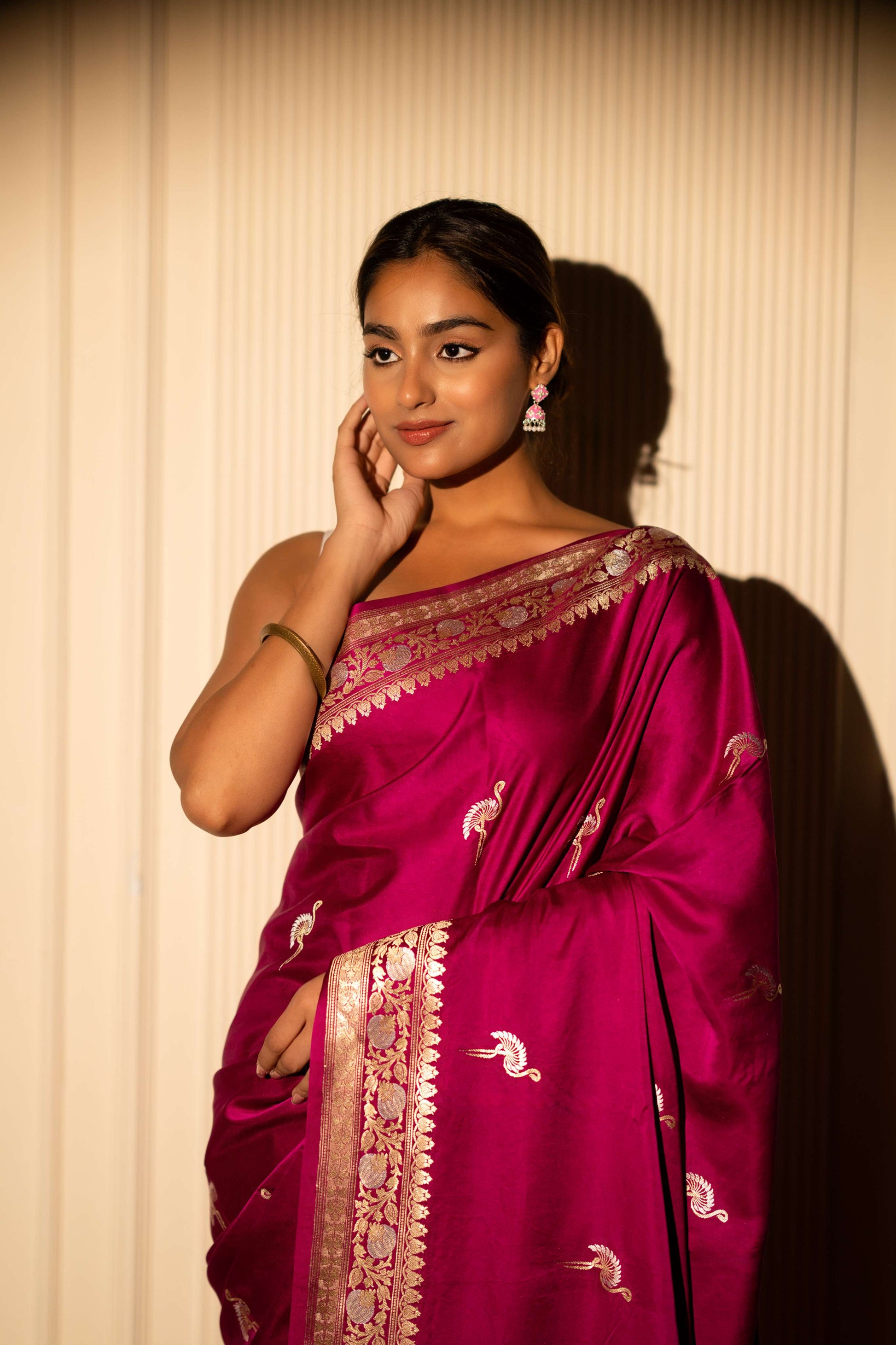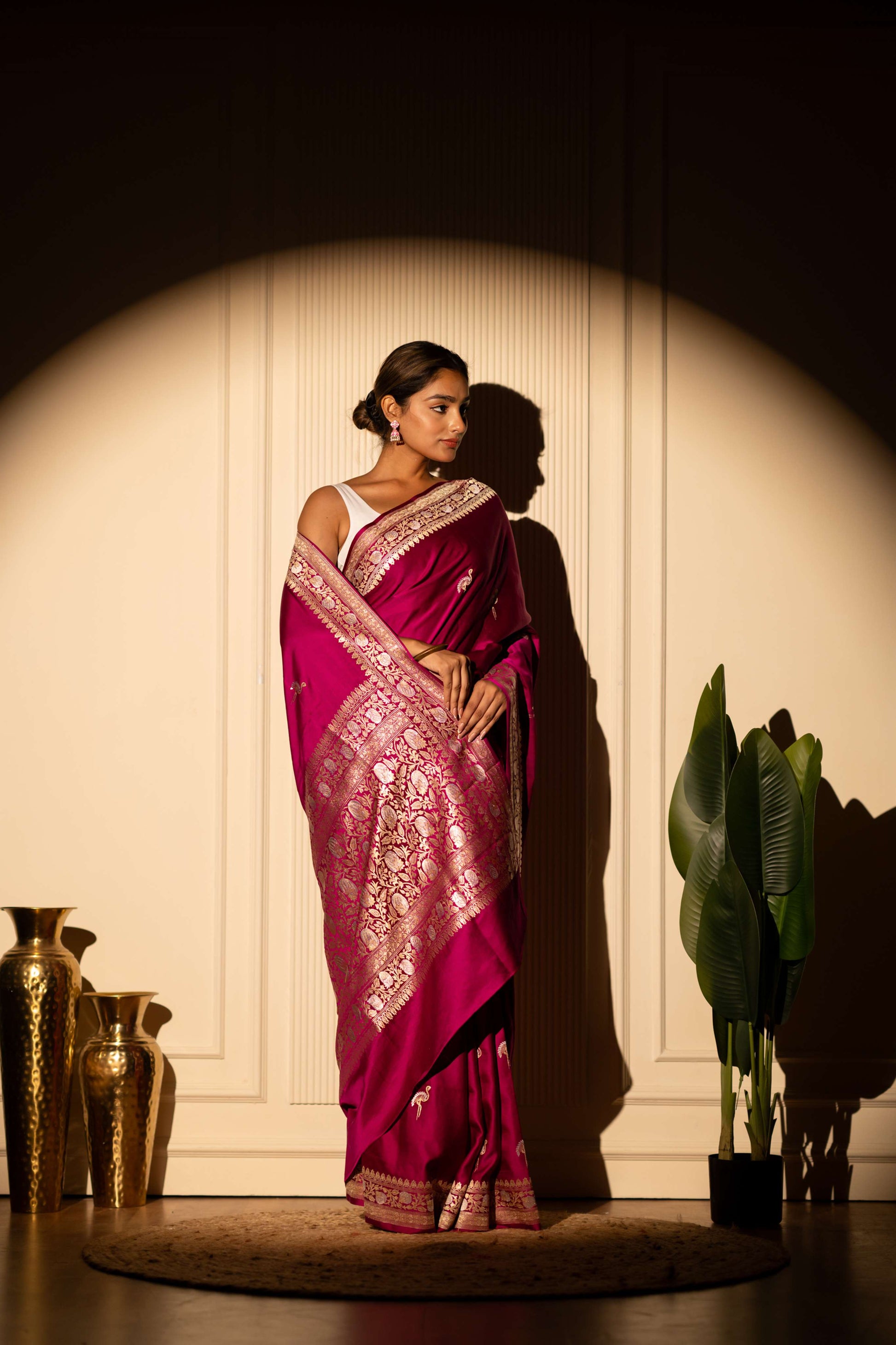 This saree comes with its own blouse piece. The blouse shown on the model is used solely for styling and presentation.