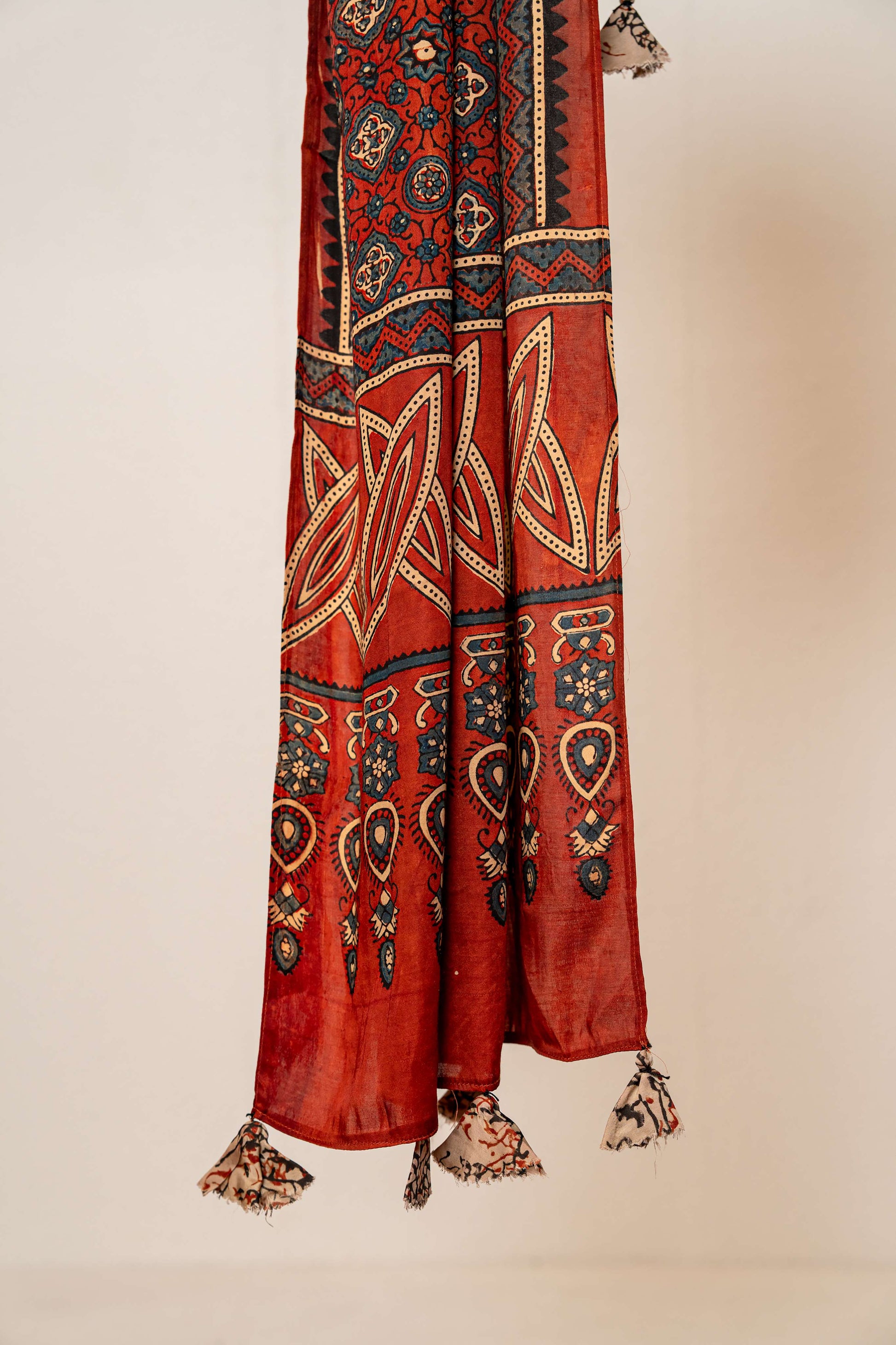 Rust color Modal satin Ajrakh print stole