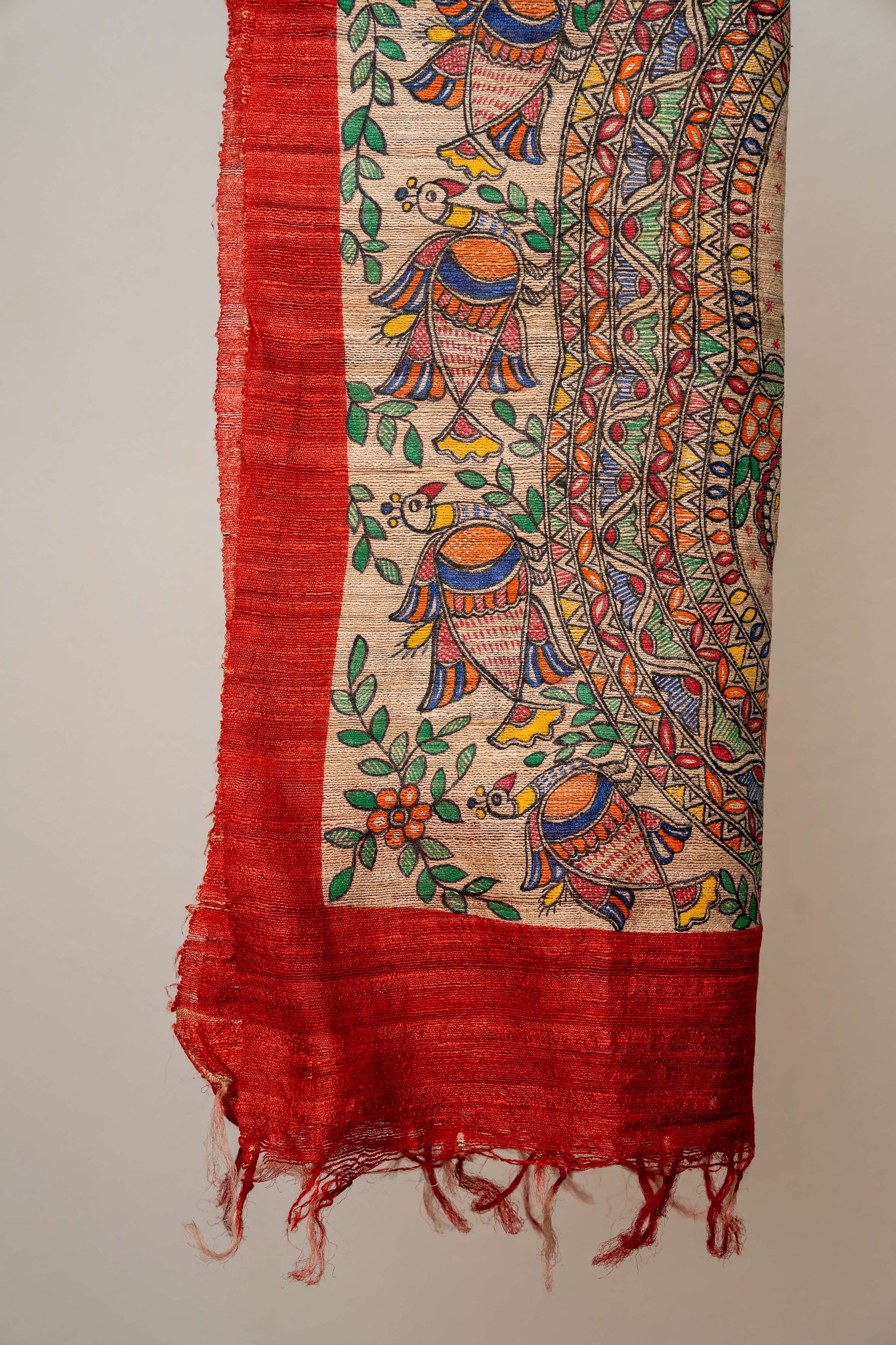 Madhubani Art Red tussar stole