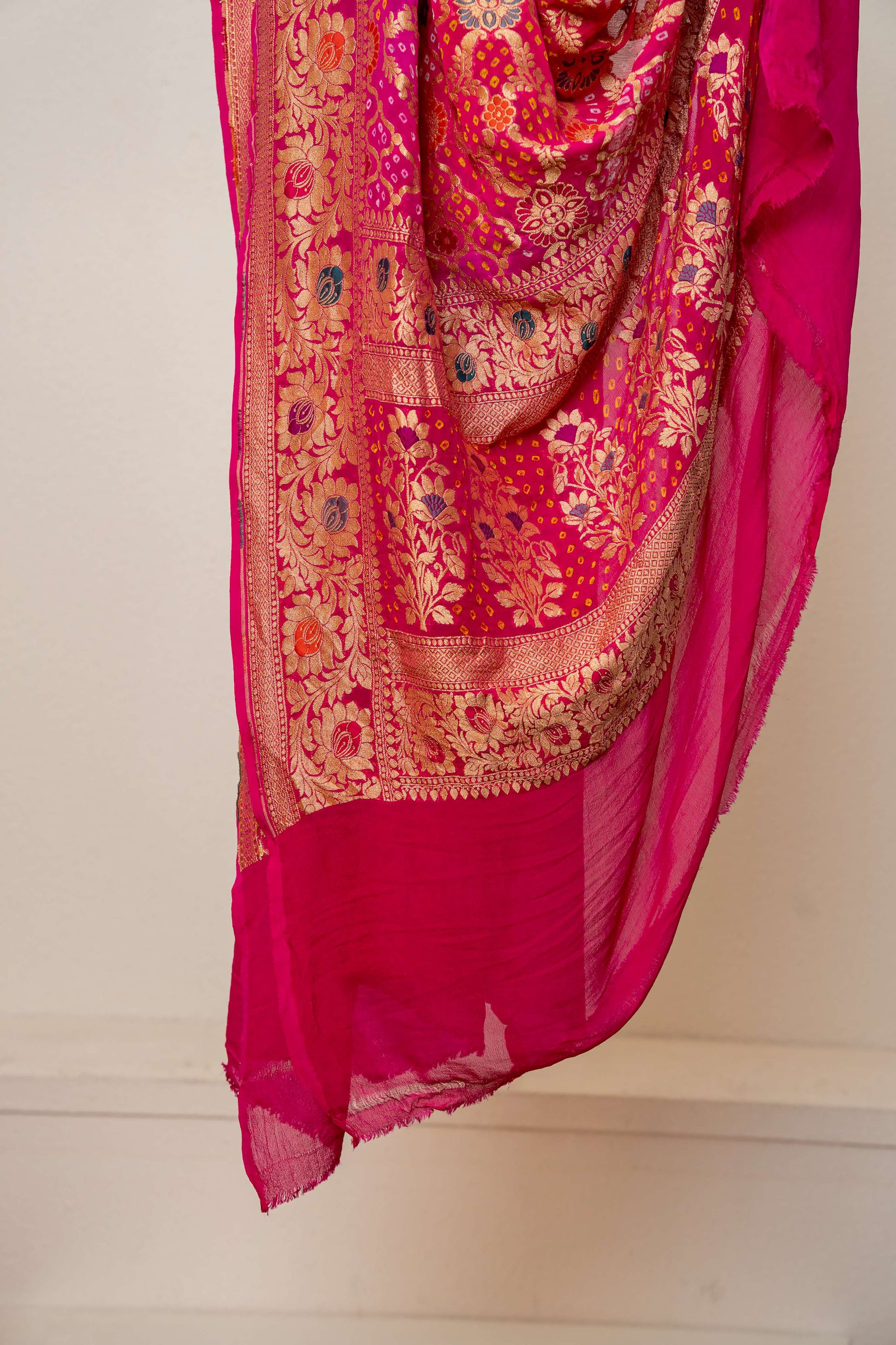 Fuschia Pink Pure Khaddi Georgette Meenakari Neemzari Bandhej Dupatta