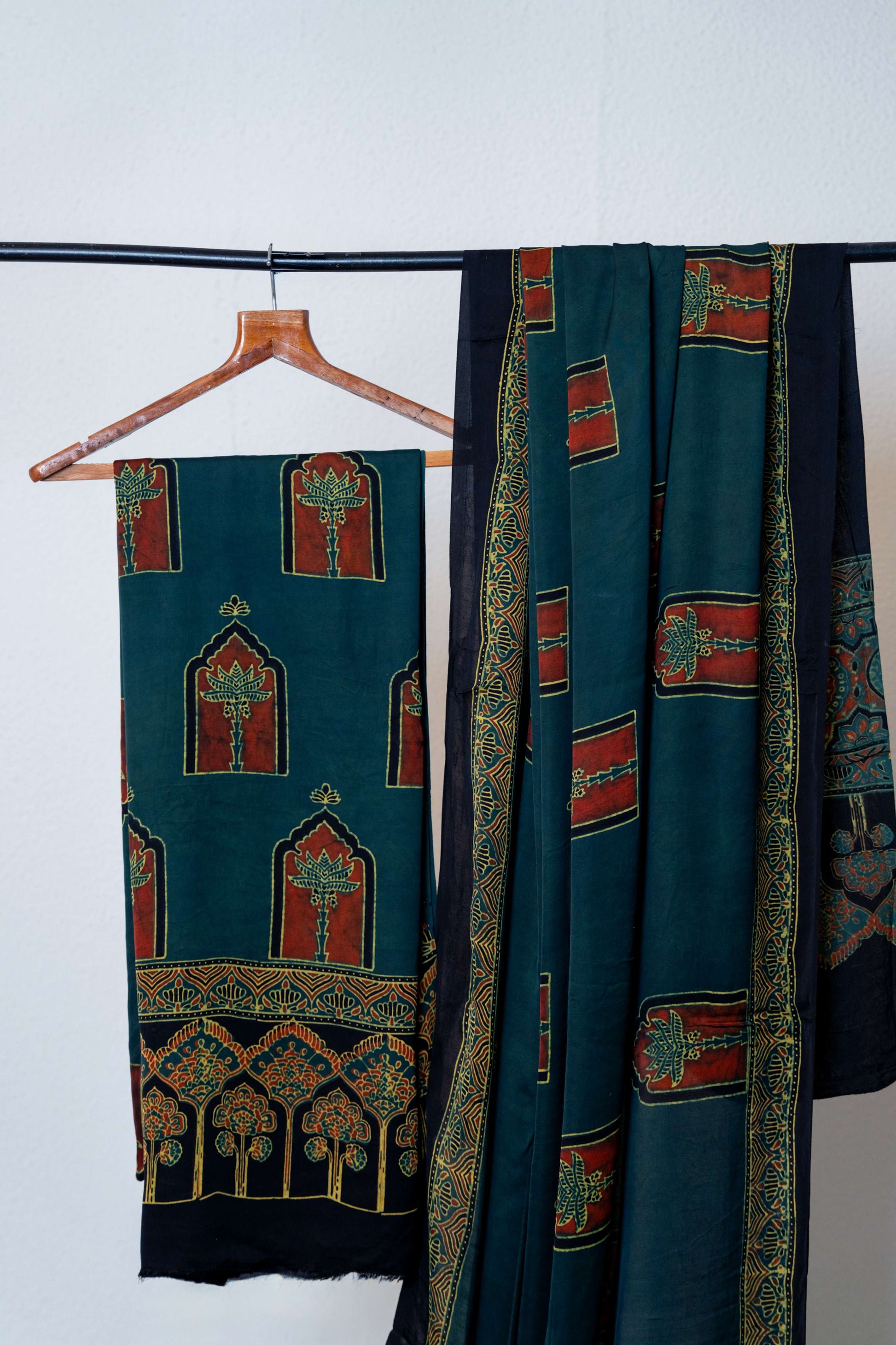 Dark Green Ajrakh Print Modaal Silk Kurta and Dupatta set