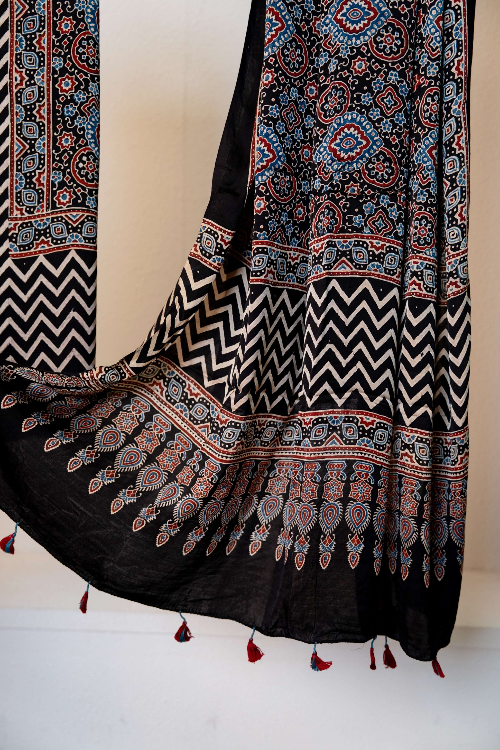 Black Ajrakh Print Modaal Silk Kurta and Dupatta set