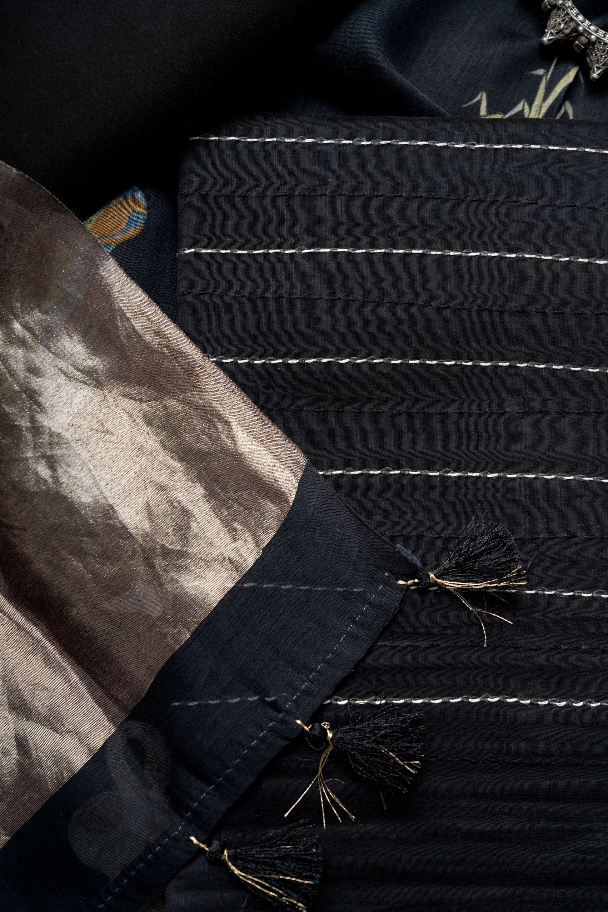 Black Tissue Pallu Chanderi Digital Print Dupatta and Kantha Kurta with bottom