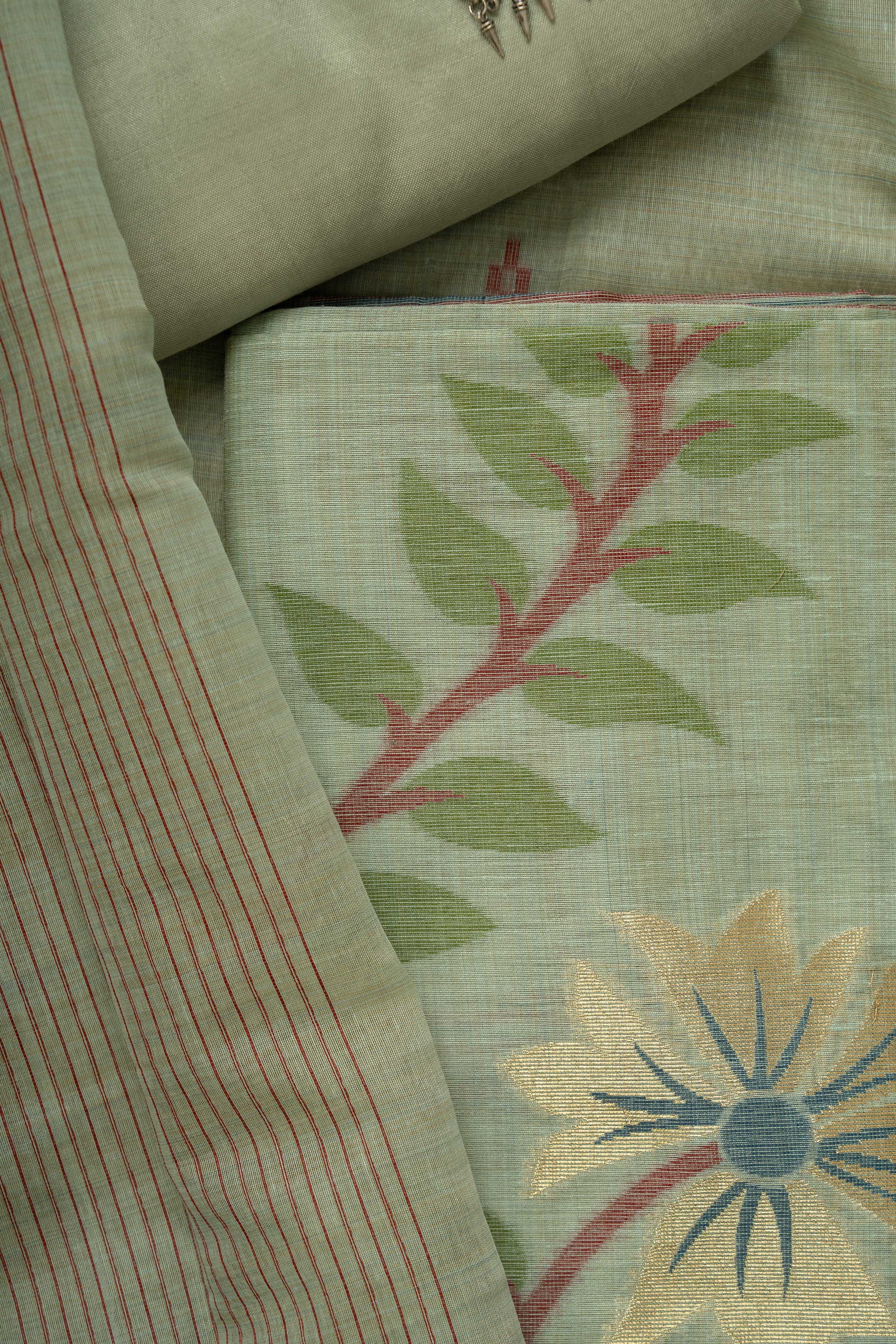 Light Olive Green Chanderi Weaving Jamdaani Suit Material