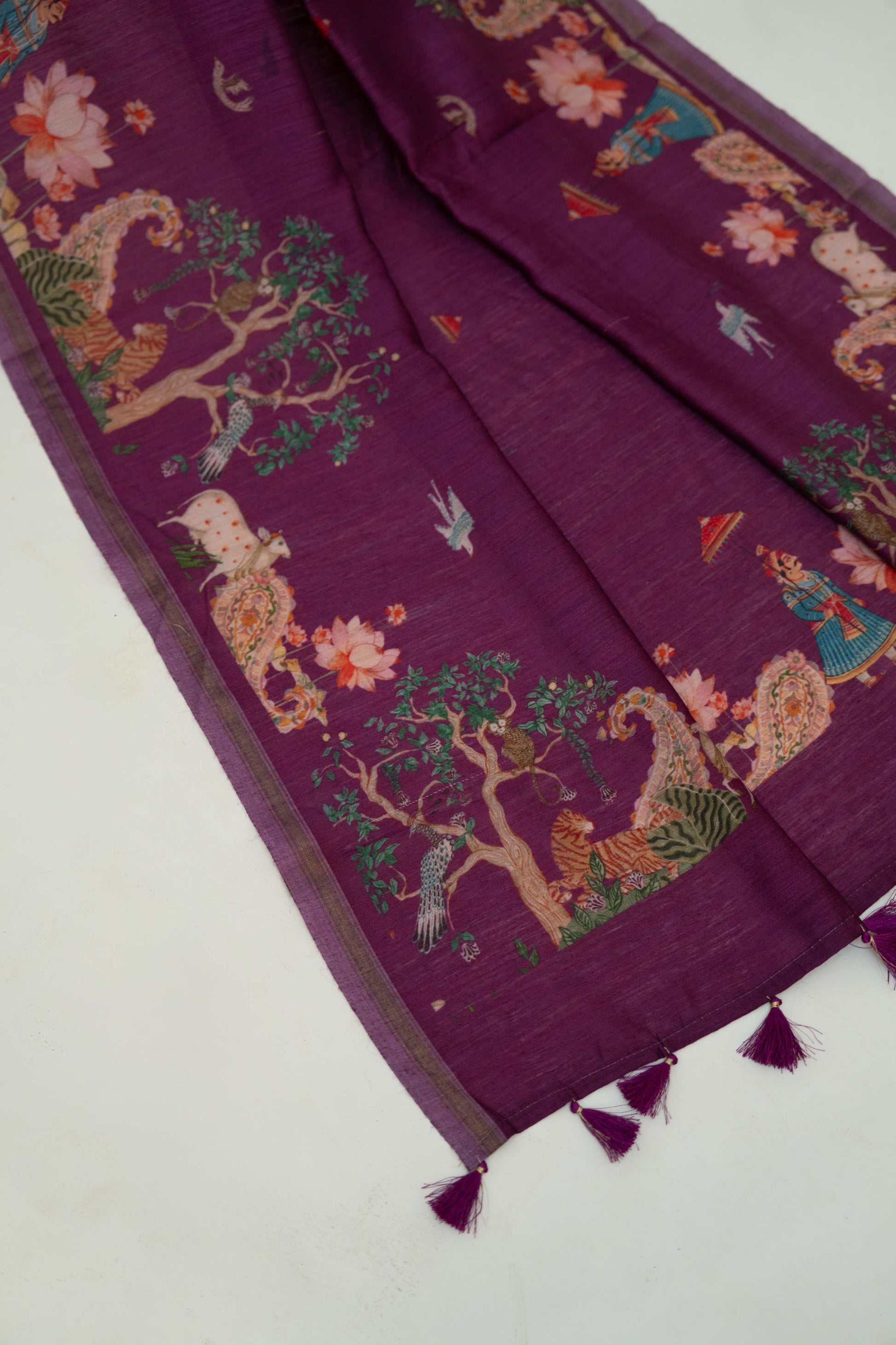 Dark Purple Moonga silk Pichwai Digital Print Suit Material